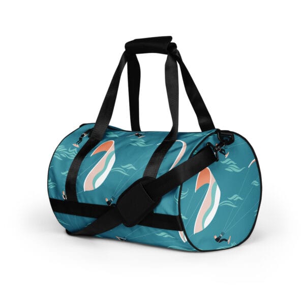 Ready to get your fitness on? Add some punch to pumping iron with this all-over print gym bag. Made from 100% polyester and sturdy, water-resistant fabric, this bag is fun meets function. And it’s got pockets!