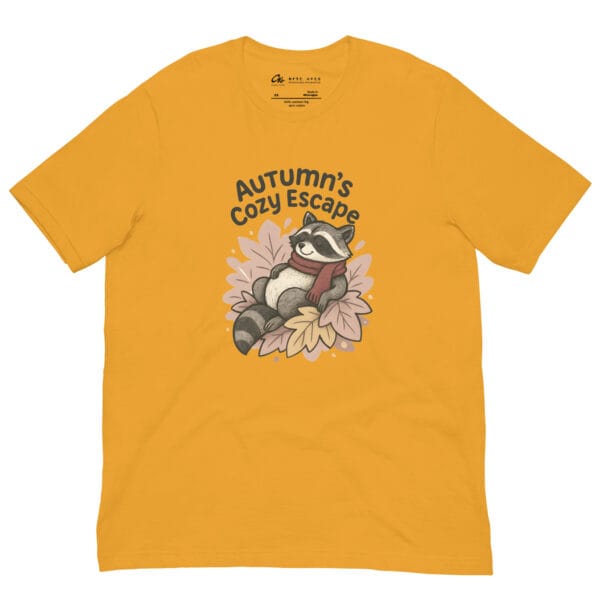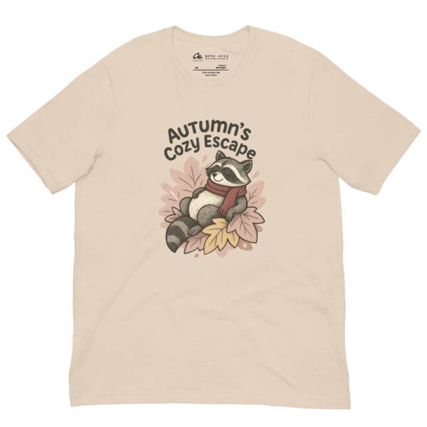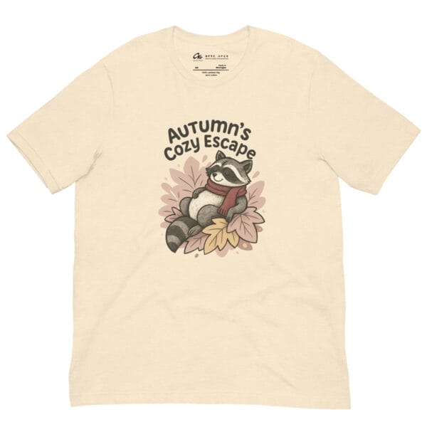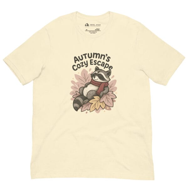 Autumn’s Cozy Escape Raccoon T-Shirt is the perfect blend of comfort, style, and storytelling. This whimsical raccoon graphic tee captures the cozy spirit of autumn with a playful design featuring a raccoon wrapped in a red scarf, making it an essential piece of fall aesthetic clothing.